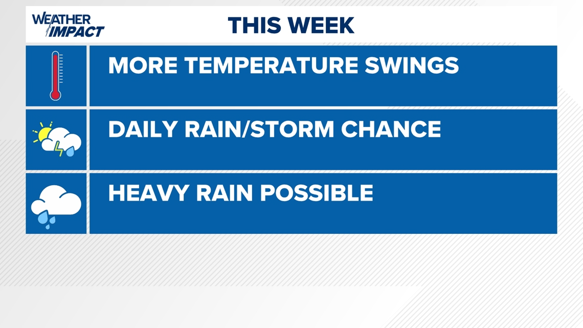There will likely be extra temperature swings this week and a number of rain and storm chances.